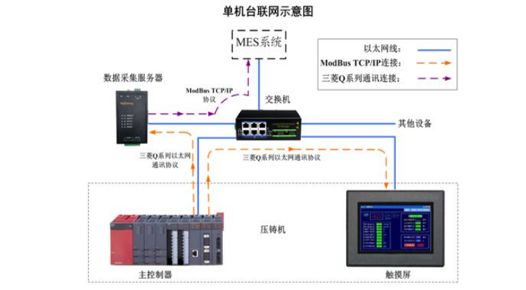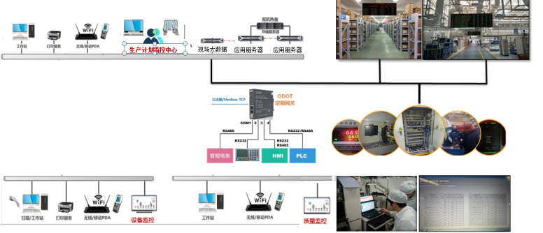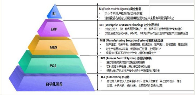制造执行系统 (manufacturing execution system, 简称MES)旨在加强MRP计划的执行功能,把MRP计划同车间作业现场控制,通过执行系统联系起来。这里的现场控制包括PLC程控器、数据采集器、条型码、各种计量及检测仪器、机械手等。制造执行系统MES能够帮助企业实现生产计划管理、生产过程控制、产品质量管理、车间库存管理、项目看板管理等,提高企业制造执行能力。  企业信息化四层架构体系 MESA(制造执行系统协会)提出的MES功能组件和集成模型包括11个功能,最初定义MES的时候提出,只要具备功能之中的某一个或几个也属MES系列的单一功能产品,正是因为这样的定义,引发了诸多的矛盾和尴尬。  MESA定义的MES应用功能集成模型 自动化生产厂家由于具有先天的对设备、网络的理解和基础研发能力使得他们在数据采集方面如鱼得水,而对于管理理论、管理方法轻车熟路的ERP厂商,却对现场控制系统、数据采集,有着与生俱来的生疏和规避。随着智能工厂的深入建设,对于MES的要求提出更高的要求,MES不仅与ERP集成,还要求与控制系统进行集成;不仅要求进行数据采集,还希望实现控制参数、工艺标准的下达。这也对自动化设备提供商和ERP厂商都提出很大的挑战,企业资源数据来源于工厂的多个角度,如工艺资源、制造资源、流程节点等等正是自动化设备厂商认知盲区,由于两方各不相让造成目前智能工厂虽然发展多年依然发展缓慢或者产业规模根本就没有起色的真正原因。 重新定义制造执行系统功能要素: 1.**车间资源管理**:车间资源是车间制造生产的基础,也是MES系统运行的基础,车间资源管理主要对车间人员、设备、工装、物料和工时等进行管理,保证生产正常进行,并提供资源使用情况的历史记录和实时状态信息。 2.**生产任务管理**:包括生产任务接收与管理、任务进度展示和任务查询等功能。提供所有项目信息,查询指定项目,并展示项目的全部生产周期及完成情况。提供生产进度展示,以日、周和月等展示本日、本周和本月的任务,并以颜色区分任务所处阶段,对项目任务时时跟踪。 3.**车间计划与排产**:高级排产工具(APS)结合车间资源实时负荷情况和现有计划执行进度,能力平衡后形成优化的详细排产计划,提高计划员排产效率和生产计划准确性是优化生产流程以及改进生产管理水平; 4.**物料跟踪**:通过条码技术对生产过程中的物流进行管理和追踪,物料在生产过程中,通过条码扫描跟踪物料在线状态,监控物料流转过程,保证物料在车间生产过程中快速高效流转,并可随时查询。 5.**质量管理**:生产制造过程的工序检验与产品质量管理,能够实现对工序检验与产品质量过程追溯,对不合格品以及整改过程进行严格控制。其功能包括:实现生产过程关键要素的全面记录以及完备的质量追溯,准确统计产品的合格率和不合格率,为质量改进提供量化指标。根据产品质量分析结果,对出厂产品进行预防性维护 6.**生产过程管理**:生产过程中采用条码、触摸屏和机床数据采集等多种方式实时跟踪计划生产进度,生产过程管理旨在控制生产,实施并执行生产调度,追踪车间里工作和工件的状态,对于当前没有能力加工的工序可以外协处理。实现工序派工、工序外协和齐套等管理功能,可通过看板实时显示车间现场信息以及任务进展信息等。 7.**生产监控**:生产监控实现从生产计划进度和设备运转情况等多维度对生产过程进行监控,实现对车间报警信息的管理,包括设备故障、人员缺勤、质量及其他原因的报警信息,及时发现问题、汇报问题并处理问题,从而保证生产过程顺利进行并受控; 8.**统计分析**:能够对生产过程中产生的数据进行统计查询,分析后形成报表,为后续工作提供参考数据与决策支持. 随着时间推移,市面逐渐推出由专业数据采集设备提供商与ERP研发企业联合研制的”ERP+MES的精益制造解决方案“,打破两个行业各不相让的尴尬局面,ERP研发商在大数据的基础上将精益生产管理思想进一步渗入企业管理,精益生产管理思想得到进一步升华。相比单纯的ERP或者MES,精益制造管理系统在企业落地方面更具有可操作性,在汽车、家电等装配行业,企业基本可以实现JIT、JIS管理。  互联协议转换器实现设备与服务器互联互通  食品医药中的数据采集  实现现场数据与服务器数据交换 案例展示: 1.汽车电装公司实景 地址:四川.成都 产品:汽车各类启动电机、交流电机  生产车间电子看板 ` 现场调度平台对生产线进行切换和监控 亮点: (1).生产现场和物流仓储采用大屏幕电子看板实现生产计划和物料需求试试监控和有效拉动; (2).线边库存保持在一小时用量,每日完工后线边库存刚好消耗完毕,整个现场干净有序,整体效率提升30%; (3).每日生产计划及时完成率达到90%以上,仓库存货降低30%,错误率小于0.5% 2.汽车零部件公司 地址:重庆 产品:压铸件  需要采集的参数: (1).设备OEE:铸造时间、停机时间(起)、停机时间(止)、停机原因(设备因素); (2).生产情况:射压次数(起)、射压次数(止)、压力设定、升压阀、压铸压力、升压时间、料饼厚度、压射速度 1、压射速度2、压射速度3、压射速度4、加速位置、减速位置、铝液温度; (3).质量参数:生产模次时间、铸造压力、浇铸温度、喷淋时间、循环时间、锁模力(MN);  单机台连接方案及拓扑 通过在以太网中接入ODOT-MV103数据采集服务器,